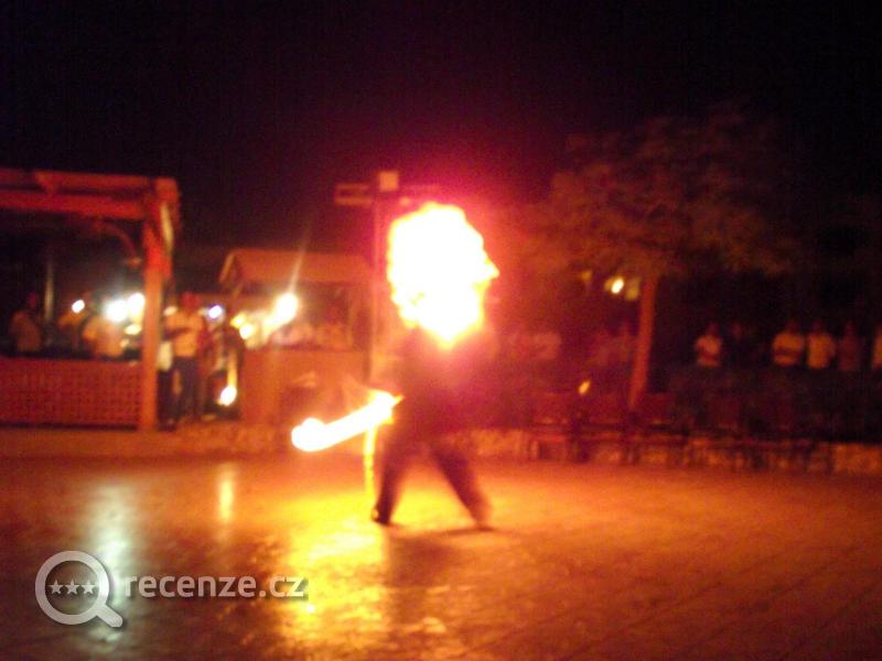 Strava byla opravdu pestrá a musel si vybrat opravdu každý. Široký výběr pečiva, těstovin, zeleniny, sladkého, mořských plodů, krabi, krocani, kachny, kuřata, studená kuchyně, rolády, čalamády, úplně VŠE. Střevní problémy z nás pěti nikdo neměl a pokud někdo bude mít, tak snad jen z "plácání". Co se týče nápojů, tak během snídaně káva, čaje, džusy (mango, pomeranč, borůvka) něco jako tang, voda a pokud chcete ovocný fresh, tak za 2 €, to samé platí pro presso a cappuccino, které se doplácí, není v rámci all inclusive. Během oběda a večeře jsou piva a vína, pivo LUXOR je dobré, ale nám během pobytu ho po nějaké době přestali servírovat a dali do placu MARASKU a to byl hnus a pachuť, Češi hudrovali a nechutnalo snad nikomu. Vína dobrá, silná a vynikající. U bazénu se ve snack baru dělají pizzy, sem tam grilovaná mrkev, okurka, párková zeleninová směs a za to se neplatí, ale pozor na pláži se pizza platí za 8 € včetně lahve piva (nikoho jsme tam neviděli za 12 dní nic kupovat). Na pláži je také bar s pivem, džusy, vodou, kávou (instatní), ze stroje si opět připlácíte. Discotéka COCCO LOCCO funguje, převážně na to upozorní animátoři a do 01:00 do rána funguje all in a nalejou co chcete. Alkohol místní výroby je WHIKY, GIN, OUZO, RUM atd. Koktejly a míchané drinky se připlácí za 3 €. CK Blue Style platí jednou za pobyt večeři v Sea Gull - Rybí Restaurace, jinak stojí 30 € na osobu.