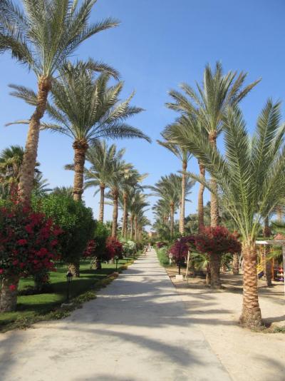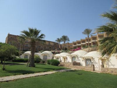 Cesta z letiště cca 1 hodinu. Příjezd na hotel v ranních hodinách (myslím, že kolem 8h). Přivítání tradičním egyptským vychlazeným ibiškovým čajem a ledovým ručníčkem. Vzápětí se vytvořila řada na recepci, kdy byl všem přidělen pokoj. My jsme dali do pasu 8 dolarů za dvě osoby a dostali jsme pokoj s číslem 40xx. Pokoj nebyl ve vysokých budovách, kam mířila většina ostatních lidí, ale v nízkém kopulovitém bungalovku.