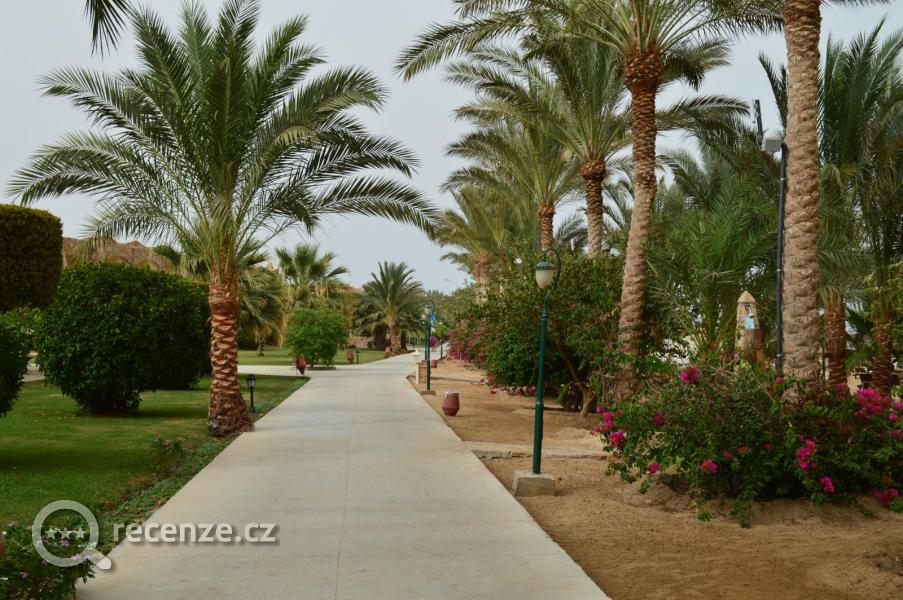 Zeleň, zeleň a zeleň. Vylezla jsem na balkon a viděla palmy, zelenou a hustou trávu, keře, stromy, květiny. Je až neuvěřitelné, že když vylezete na druhé straně směřující na konec areálu, vidíte poušť a po zelené barvě ani zmínka.