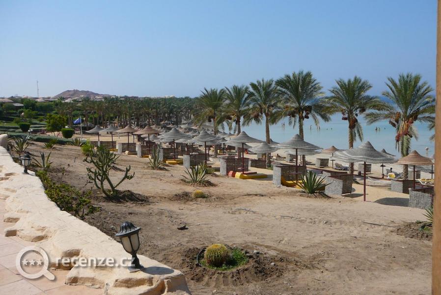 Pláž je vhodná pro děti, je s korálovým podložím, při přílivu max 130cm, při odlivu 10cm, naučí se šnrchlovat a mají možnos vidět i korály a ryby. Pro větši dobrodruhy je potřeba se trochu projít na molo, kterí je společné s vedlejším hotelem Kahramou, anebo jít až za molo, kde je zátoka a je to pravé moře. Moře bylo krásně čisté, na pláži lehátek dostatek i madrací.