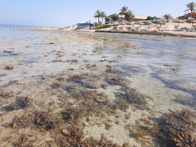 Pláž čistá, každé ráno udržovaná, dostatek lehátek i slunečníků. Hrubý písek, ale do vody raději s botami. Bar na pláži, pití jen do plastových kelímků, ale všude odpadkové koše.