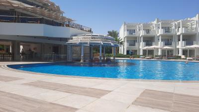 Zvolili jsme variantu De Luxe, která nám umožnila prožít naprosto klidnou dovolenou s krásnými výhledy jak na moře, tak i na systém bazénů v soukromé části rezortu. Hotel má italského majitele a animační programy jsou zábavné, ale zejména určené Italům.