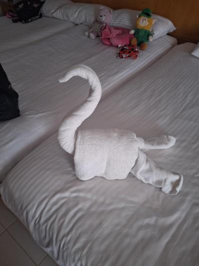 Je pravda,že vybavení hotelu je možná starší, rozhodně ne luxusní, ale vybavení hotelu mi rozhodně dovolenou nedělá...Pokoje byly vždy čisté, koupelna sice dost zažila, ale byla čistá a voňavá. Moje malá měla každý den nějaké překvapení na pokoji. Po celou dobu pobytu nás měl na starost jeden pokojský. Pokud bylo něco potřeba, stačilo vylézt na chodbu a zavolat jeho jménem. Do minuty jsme měli vše,co bylo třeba. Obrovský dík patří Mahmoud doctor. Na pokoji rozhodně žádné štěnice nebyli.