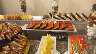 Vynikající! Spousta jídel, opravdu každý si vybral, alergici a pod. se s personálem domluvili a oni se jim s úsměvem věnovali. Jeden člen od nás měl bolesti v krku, persovál ihned ochotně pomohl a poradil směsici čajů, která zabrala. Zákusků a sladkého byl velký výběr. Jediné, co nebylo - vepřové, protože v Egyptě vepřové maso nejedí. Kávy, čaje, vody a džusů bylo stále dost. Pouze automaty na kávu šly ráno a večer, v jiném čase byla vždy k dispozici překapávaná káva. Přesnídávky byly výborné, ovšem vzhledem k dostatku jídla na snídaně, obědy a večeře jsem je moc nevyužívala.