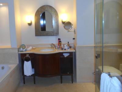Nadherne pokoje, nektere mely francouzske okno, jine umyvadlo i zachod u postele za zavesem 5308 na stesti dvere do koupelny a tristni vyhled na beton hotelu Sunrise a potapece Akvarius , domorodi hosi v kozenkovych bundach a cepicich velmi hloupe terorizovali pistalkama turisty . Ubytovani nasledovala rezignace 1.pokoj na krizovatce ,neprisli jsme trenovat maraton uzasne daleko . druhy pohled na benzinu pro tankovani lodi a celni budovu opet v sedme krajine a pak hystak s hrozbou ze letime zpet ten vecer ,kluci rikali platte 6 tisic navic a meli legraci z nas ,nebot my od pul noci po letistich na jejich humor nemeli energii Projekt zmrseny a ani krasne dekorace z arabesek nevylepsi ten des architekta