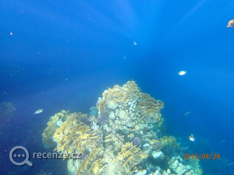 Pláž čistá, lehátek dostatek, šnorchl úžasný na reefu 4 dny otevřený vstup, v oku šnorchl skoro každý den, 1 den jsme byli šnorchlovat u Relax pláže v laguně, je tam také pestrý podmořský život, Marsa Mubarak poslední odpoledne, 2 karety hned u břehu. Viděli jsme denně karety, síbu skvrnitou v oku, chobotnici, metrovou puffer fisch, Napoleona 2 metry