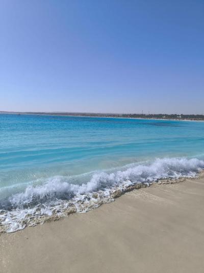Největší překvapení pobytu. Je až neuvěřitelné, že středozemní moře může být tak krásné s tyrkysovou barvou a průzračnou vodou. Krásná, dlouhá a docela široká pláž. Po celé pláži je velké množství lehátek s deštníky. Většinou moře klidné, párkrát trochu vlny, ale tak akorát. Pláž s bílým pískem v kombinaci s modrou vodou je až neuvěřitelně krásná. Na pláži neotravují žádní prodejci… jen sem tam nabízí hotelovou masáž. Kousek po pláži lze dojít na skalnatý výběžek, kde jsou úžasné pohledy na pláž a moře. Pozvolný vstup do průzračného moře z hotelu JAZ Crystal, JAZ Oriental a nového hotelu JAZ Sakhra. Nedoporučuji pláž u hotelu JAZ Almaza Beach vzhledem k velkým kamenům při vstupu do moře….nedá se to srovnat s plážemi ostatních hotelů JAZ, které jsou jen pár metrů vedle. V hotelu také k dispozici dostatečně velký bazén, ale ten jsme nevyužili.