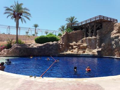 Hotel ma rozlehlou plaz, bazen pred hotelem nedoporucujeme protoze je plny deti a jejich rodin, ale nad potapecskym centrem jsou dva bazeny o kterych malo kdo vi, na osvezeni to staci. Vstup do more je z mustku, v nekolika mistech se muzete namocit v mori i u plaze, ale chce to boty do vody. Dulezite je vzit si sebou par metru snury na poveseni plavek a kolicky. Kdyz si uvedomite ze jste v Egypte a necekate zazraky, tak to tam na tyden krasne staci.