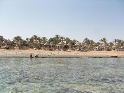Pláž písek,pak 50 m asi jen tak 0.5 až 1m vody (dobré mít boty do vody). Kdo si chce zaplavat, tak asi 50 m chůzi po mole je vstup do moře. A tam se dá potápět a už i plavat.(V podstatě u každého hotelu je to stejné. ) Ručníky a lehátka zdarma.