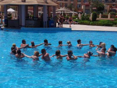 strava celkem dobrá. snídaně se vždy dalo vybrat, přes oběd jsme si venku u bazénu daly většinou pizzu. večeře byly fajn, vždy se dalo něco vybrat. my jsme tam byly 11 dní, takže je jasné, že se jídlo začlo opakovat.