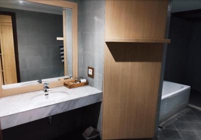 Pokoj je prostorný a vybavený moc hezky. Opravdu je zde spousta místa, takže se se zavazadly nikde nemačkáte. Je zde dost úložného prostoru. Co mi ale vadilo, tak byla koupelna, na které bylo vidět, že už něco zažila. Celkově po příchodu do pokoje byla cítit taková zvláštní zatuchlina, takže to nebylo příjemné. Nejsem nějak "cimprlich", ale toto zkazilo ten dojem.