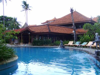 Nádherný hotel v balijském stylu, zasazený v nádherné exotické zahradě . Patrové bungalovy a několk barů a restaurací...