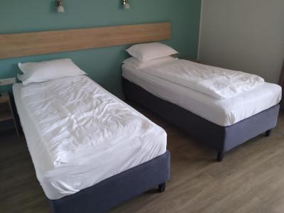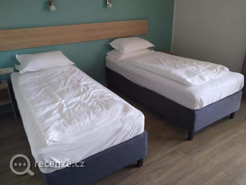 Standardní dvě lůžka, na požádání lze i vytvořit DBL, poměrně vysoké moderní matrace, spíše měkčí. Stolek s jednou židličkou, ovšem u okna další, již se 2, pak již jen lednice, TV a otevřená šatní skříň, s dostatkem ramínek a kupodivu velkým žehlícím prknem i žehličkou. Naopak scházel tresor (někde byl inzerován). Trochu potíže s aretací KEY card pro spuštění elektřiny a bez toho nešla ani lednička - to asi byla největší slabina, po návratu z celodenních výletů byl obsah nepříjemně zteplalý.