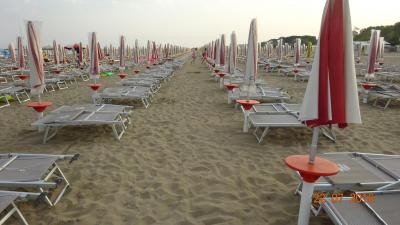 Pláž upravená s plážovým servisem.Pozvolný vstup do teplé vody. Vhodné pro děti a hry. Jen asi ten zvířený písek a někdy u okraje hromadící se tráva z moře. Stačí ale jít 10-20m do moře a je to v pohodě.