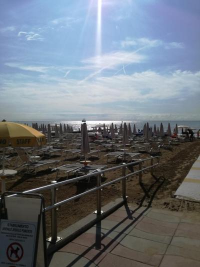 Pláž čistá, mimo sezonu dostačující, ale nedovedu si představit jak to na pláži vypadá o hlavní sezoně....slunečníky jsou blízko sebe