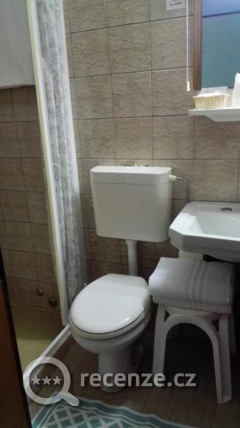 Pokoj menší, ale stačil, koupelna malá, ale velký sprchový kout.
