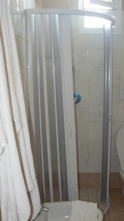Menší pokojíky - ale na dovolené u moře člověk nepotřebuje v pokoji moc prostoru, vždyť na pokoji vlastně jen přespává. Nové skříně, stoly ...hodně zrcadel :D (5 zrcadel na 2 osoby :D) Koupelna- malá, ale nově zrekonstruovaná. Ke každému pokoji malý balkon s židličkami.