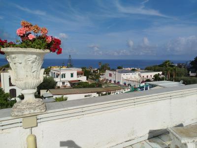 Hotel v rozlehlé a rozkvetlé zahradě s termálními bazény a barem u největšího, personál milý, lázeňské služby (masáže apod.) jsme nevyužili. Mikrobusy jezdí dopoledne a odpoledne v cca 30 min. intervalech k moři a zpět (kam se dá dojít i pěšky za 15 minut, ale zpět je to hodně do kopce), cca 4x denně do nejbližšího městečka Forio.