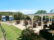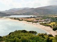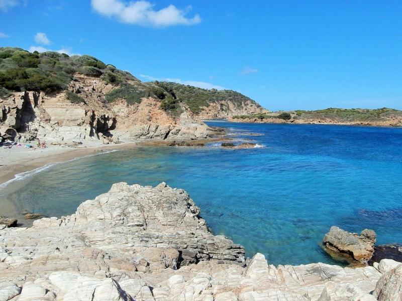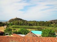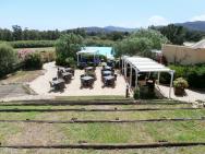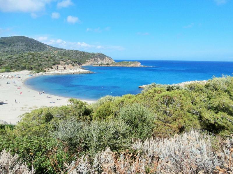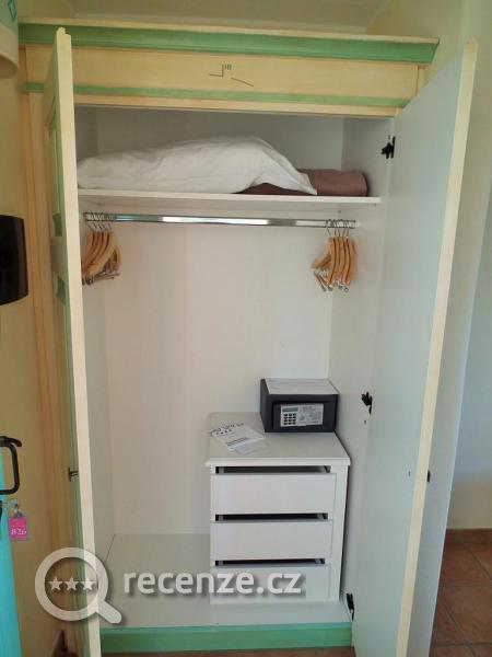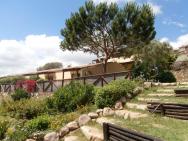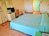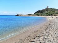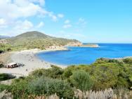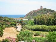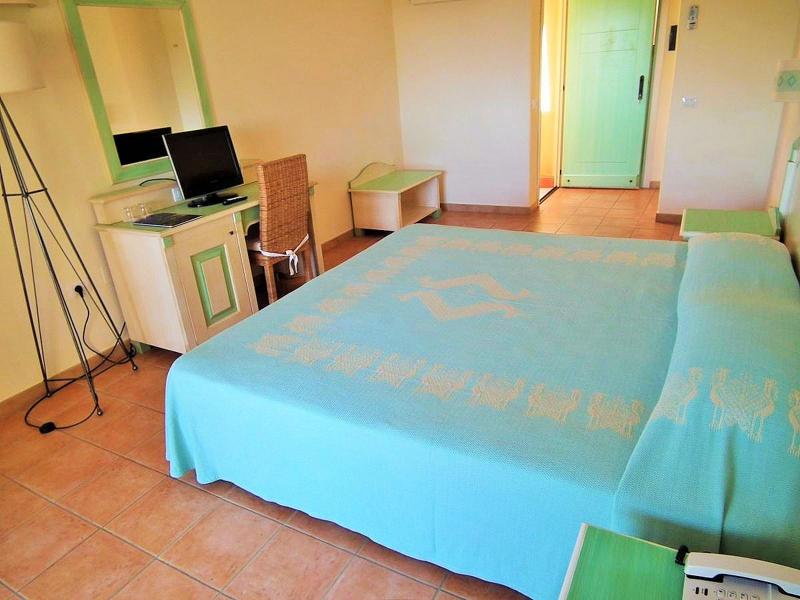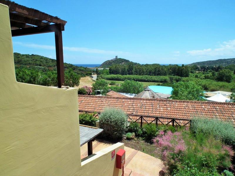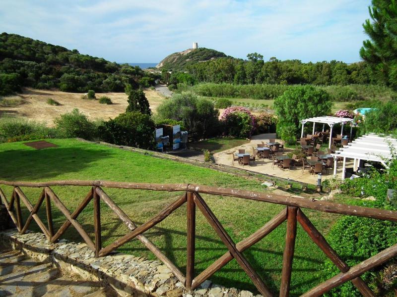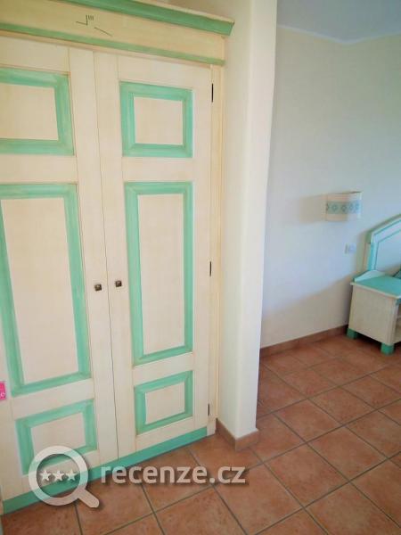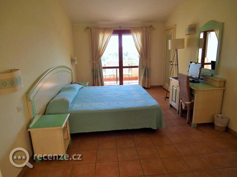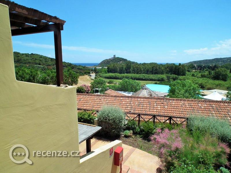 Útulné pokoje ve vilkách/budovách rozmístěných po stráni s výhledy na moře, pobřeží a věž Torre di Chia. Zařízené v sardském stylu, jednoduše, přírodní materiály, prostorné.