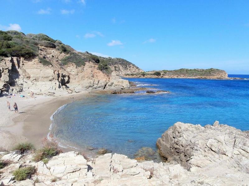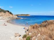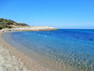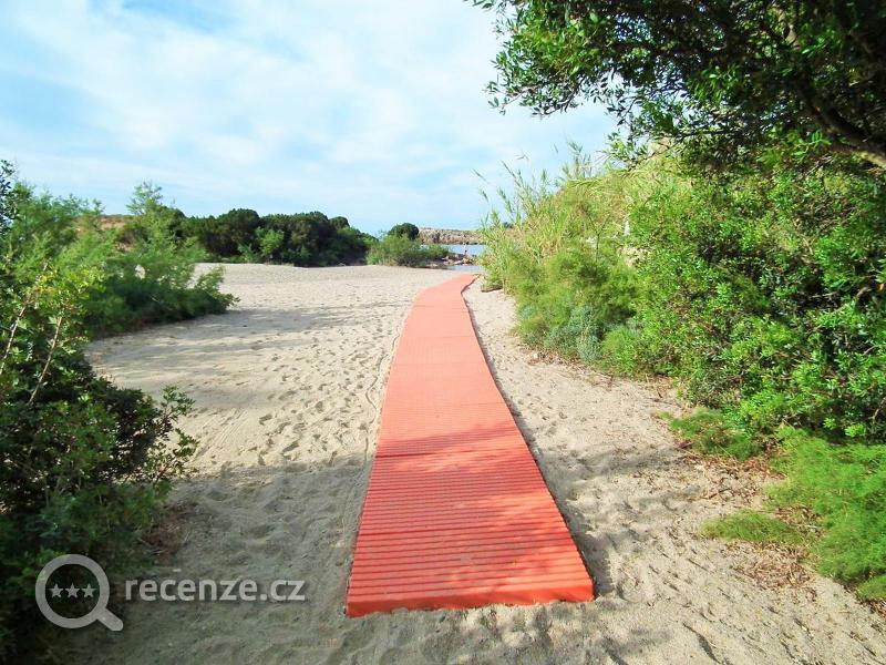 Pláž je vzdálena od hotelu cca 300 až 500 m (záleží na poloze pokoje). Pěšky jste na pláži za 4-8 minut. Pláž je rozdělena na dvě části/zátoky. Má hrubší písek, vstup pozvolný, voda byla velmi čistá. Slunečníky a lehátka zdarma, plážové osušky jsou klientům k dispozici také zdarma. U pláže je celý den otevřený snack bar (v době hlavní sezony). Další krásné pláže v okolí. Moc pěkné místo. Viz fotografie.