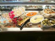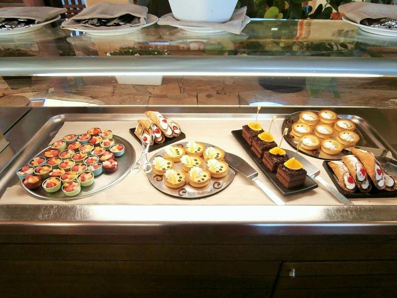 Polopenze formou bufetu. Velmi dobré jídlo, bohatý výběr. Potěší i gurmány.