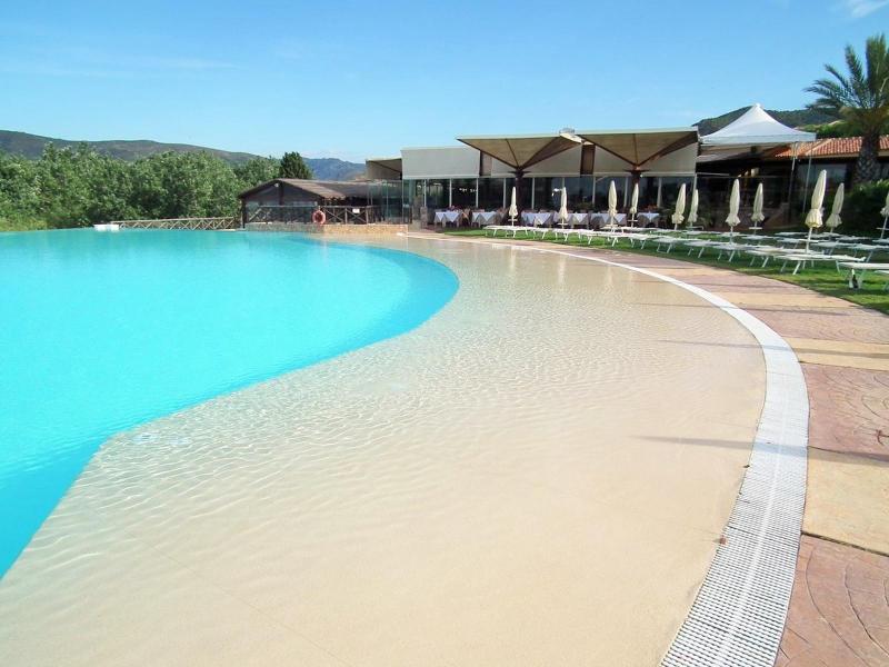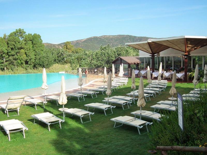 Vstupní hala s recepcí, bar u recepce, restaurace s terasou a výhledem na hlavní bazén, restaurace á la carte (za příplatek – služba dostupná jen v hlavní sezoně), bar u bazénu.. Wellness centrum nabízí saunu, tureckou lázeň, jacuzzi, emoční sprchu a různé druhy masáži, kosmetiku, manikúru (vše za poplatek). Venkovní bazén, bazén pro děti, lehátka a slunečníky zdarma. Internet: zdarma - ve vstupní hale wifi a internet point zdarma. Pro děti také miniklub (3-13 let) a dětská restaurace. Nedaleko hotelu je 18jamkové golfové hřiště a hřiště pitch & putt. Hosté mohou za výhodnou smluvní cenu využívat i vyhlášené 27jamkové golfové hřiště Is Molas.