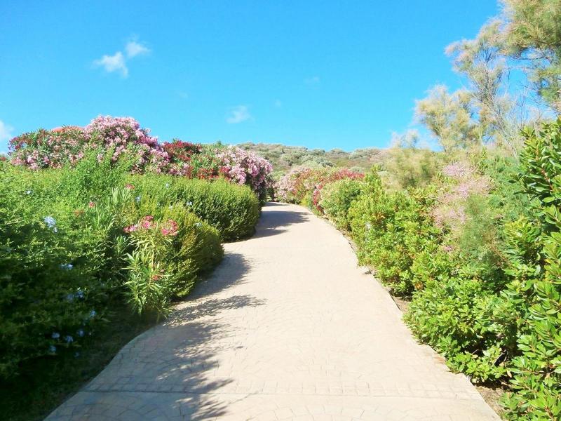 Hotelový komplex Parco Torre Chia **** je moc hezký, malebný komplex ve stráni nad zátokami s romantickými plážemi s hrubším pískem, místy s oblázky. Klidné místo plné zeleně pro relaxační dovolenou. Hotel byl postaven v roce 2008.