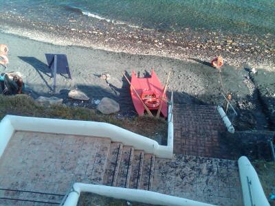 Největším zklamáním pro nás byla místní pláž s černým pískem (z dálky připomínal svojí barvou asfalt). Pláž nebyla upravená, byly na ní odpadky, chaluhy a drahý plážový servis (15 eur/set). Hezčí pláž je odtud vzdálená asi 3-4 km.