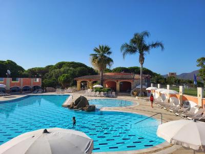 Resort jsme navštívili od 26.7.2024 na 7 nocí. Po některých negativních recenzích na tento resort jsem byl opravdu napnutý co nás čeká. Opak byl pravdou. Krásná dovolená v parádní lokalitě. Na recepci mluví perfektně anglicky i německy ! Ubytování alespoň my jsme měli zánovní se vším plně funkčním s vlastní terasou 1 min od restaurace a 2min od pláže, kam se jde po umělém chodníčku cca 50 metrů od restaurace a cca 100 metrů od ubytování ( není to 400m a nechodí se po poli v bodlákách ! ), tak jak zde někdo psal. Na pláži není bar. Ale nosí tam čerstvě nakrájené melouny a pití. Sprcha u pláže funguje a i dvě malé spršky na umytí nohou od písku. Na pláži vždy dostatek lehátek od třetí řady zdarma. Areál jsou samé palmy, květiny a borovice veliké, kde je i dostatek stínu, vše perfektně udržované a čisté, stejně jako pokoje denně uklízené. Pláž pěkná, ale jak zde bylo psáno písek smíchán se sopečným, takže voda sice naprosto průzračná, ale ne typicky Sardinská smaragdovo - modrá. Ale lze zapůjčit auto a za 15 min jízdy začínají typicky Sardinské nádherné pláže, směrem na jih. Auto 100,- Euro / den a my měli zánovní Ford Kuga rok 2024 nový vůz. Doporučuji alespoň na dva dny a udělat výlety. Resort je na odlehlém místě a dá se max. pěšky po pláži na pěknou vyhlídku na skálu cca 2km. Komáři tam jsou, ale stříkají to tam, takže jsme to brali jako komáři v ČR, nic extrémního.