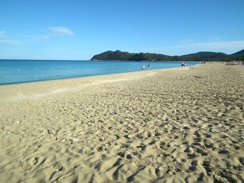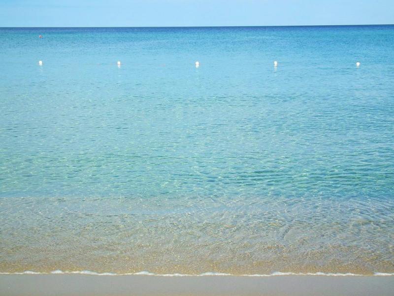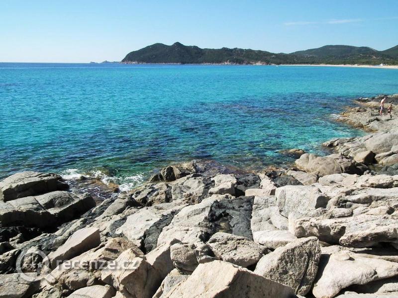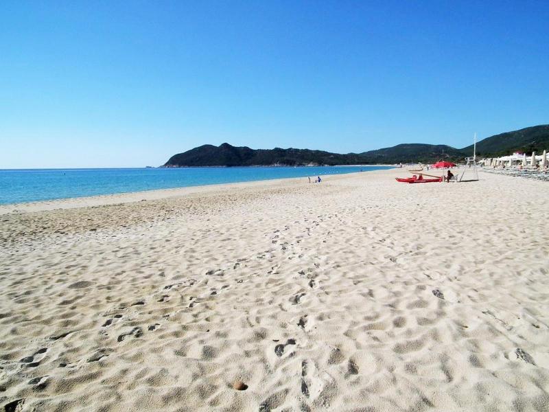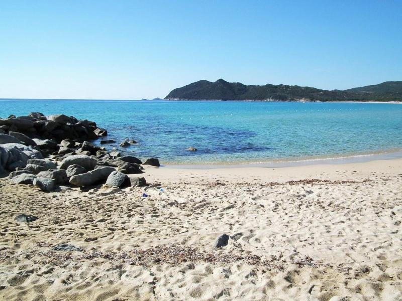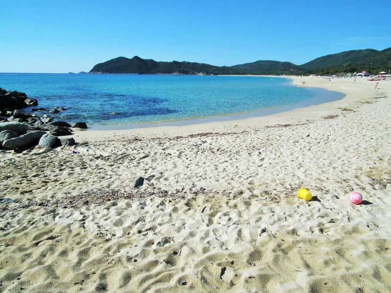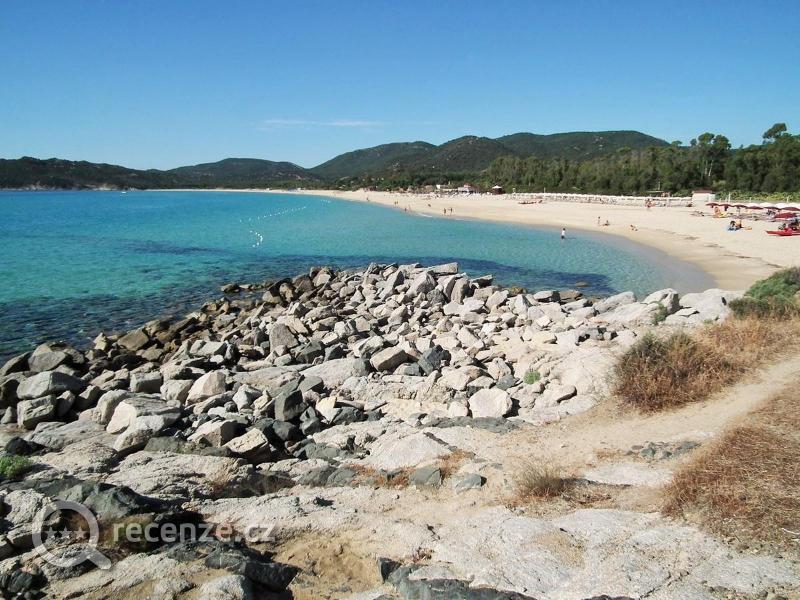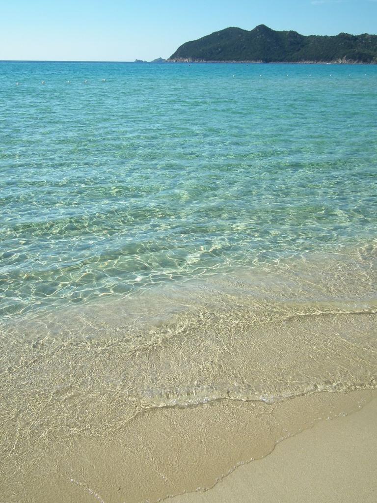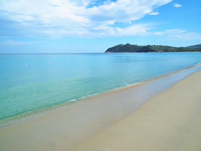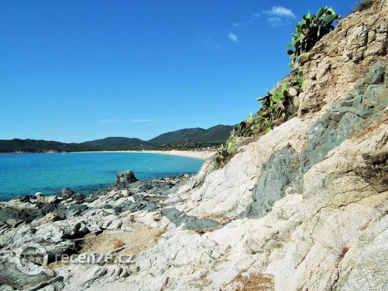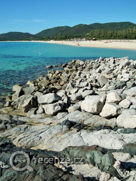 Písčitá prostorná pláž asi 100 m od bazénů, navazuje přímo na zahradu hotelu. Moře bylo krásně čisté, příjemná teplota, vstup do moře pozvolný. Vhodné i pro malé děti či osoby s problémy pohybového aparátu. Lehátka a slunečníky zdarma (mimo 1. a 2. řady ,což je na jihu Sardinie vcelku běžné).