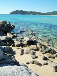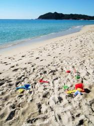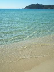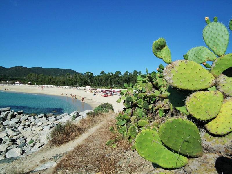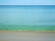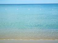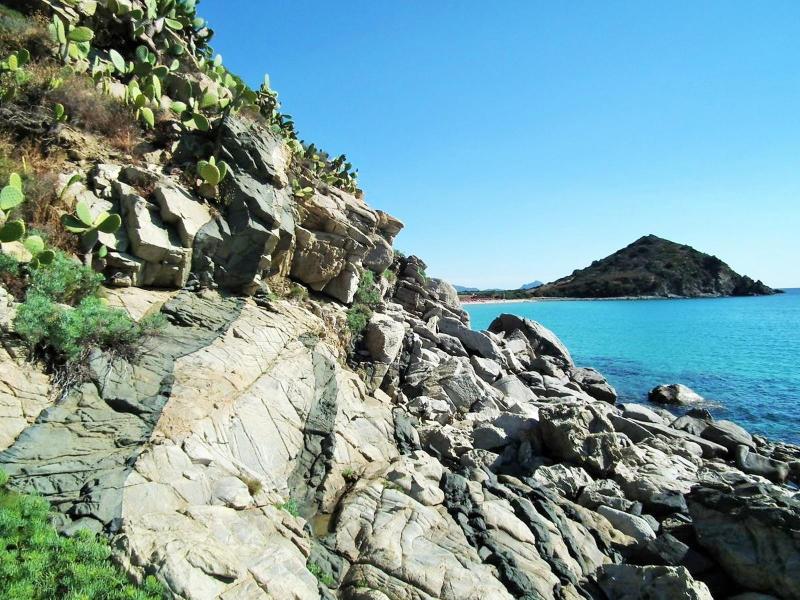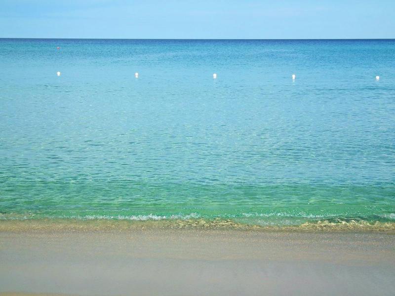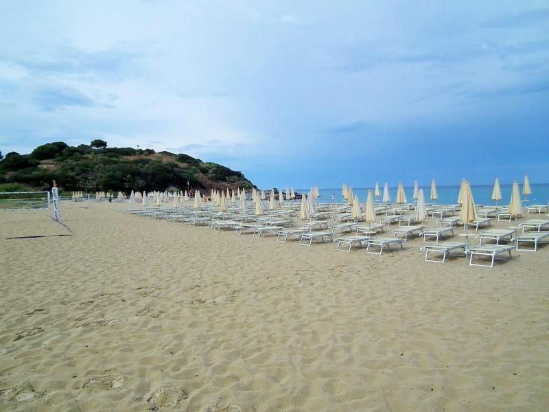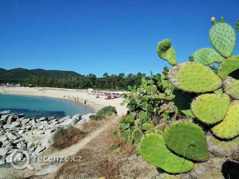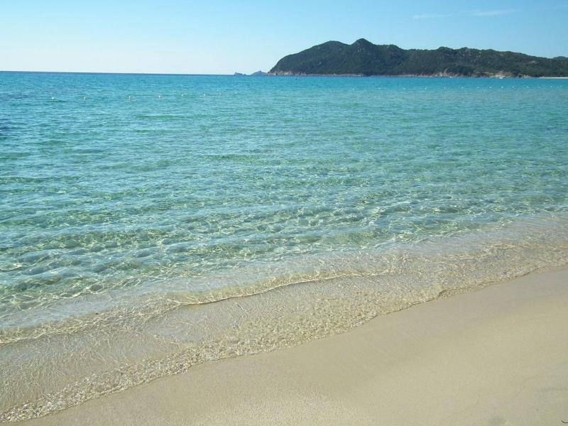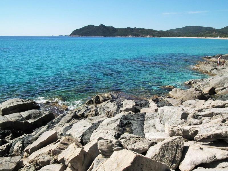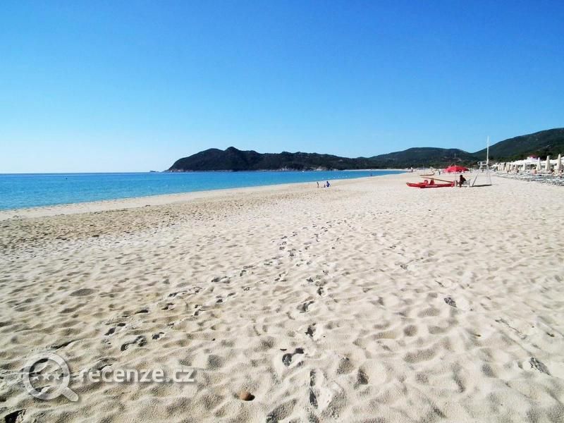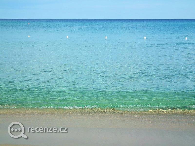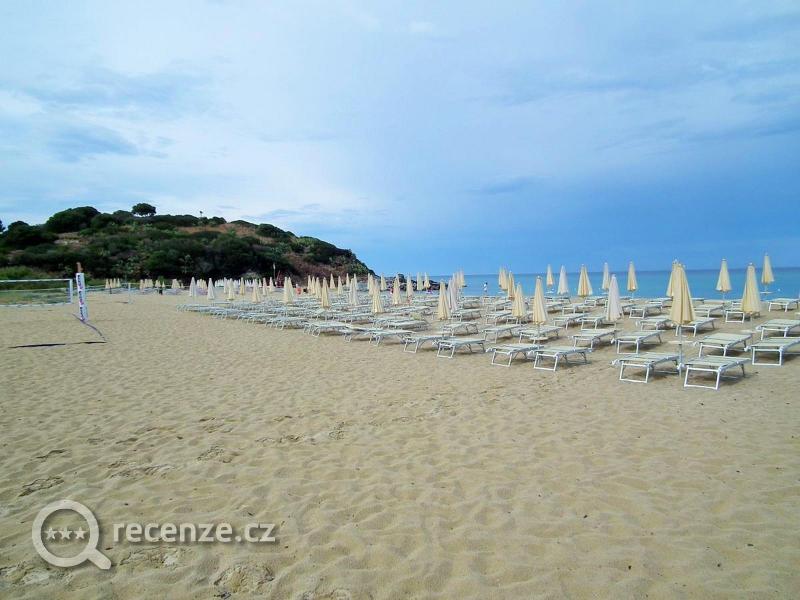 Písčitá prostorná pláž asi 100 m od bazénů, navazuje přímo na zahradu hotelu. Moře bylo krásně čisté, příjemná teplota, vstup do moře pozvolný. Vhodné i pro malé děti či osoby s problémy pohybového aparátu. Lehátka a slunečníky zdarma (mimo 1. a 2. řady ,což je na jihu Sardinie vcelku běžné).
