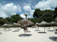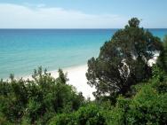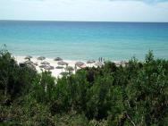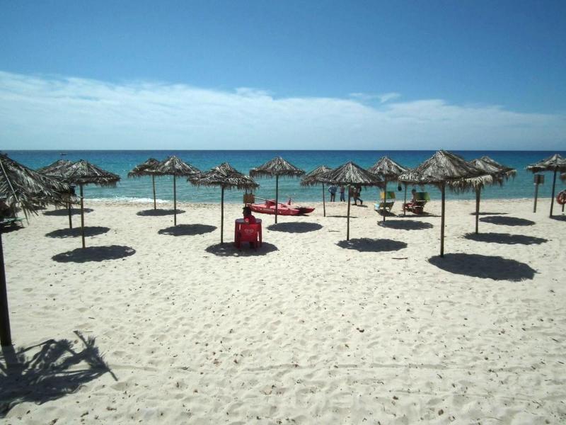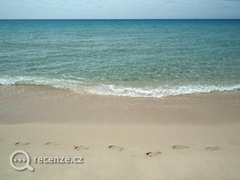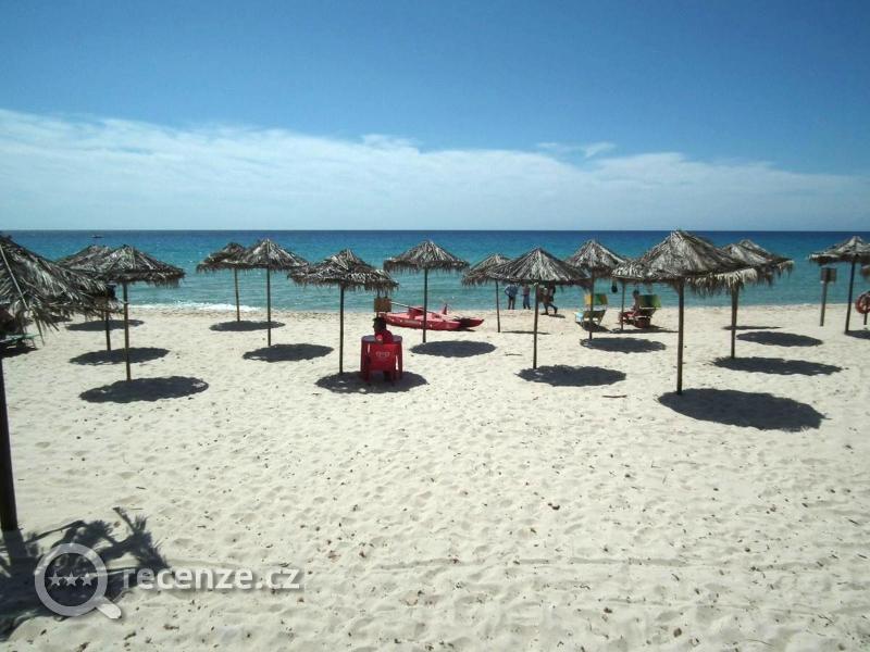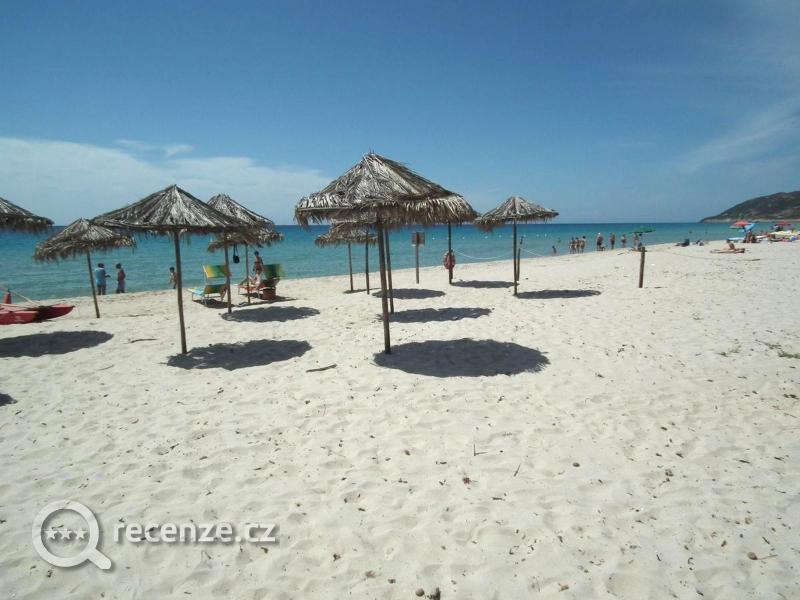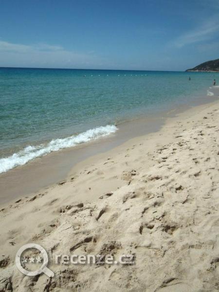 Pláž je krásná, světlý písek, pozvolný vstup, prostorná. Moře čisté a v době naší návštěvy bylo klidné. Na pláži slunečníky. Lehátka byla za popletk. Plážové osušky k dispozici nebyly, mějte vlastní. Na pláži půjčovna kanoí, šlapadel, surfů (vše mimo hotelové služby a za poplatek). Možnost potápění v nedalekém potápěčském centru, ze kterého jezdí pro klienty do hotelu mikrobus. Další krásné pláže jsou cca do půl hodiny cesty autem od hotelu - např. Nora, Chia, Tuerredda nebo Capo Malfatano.