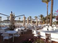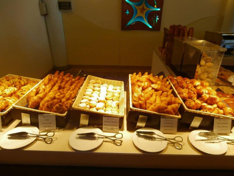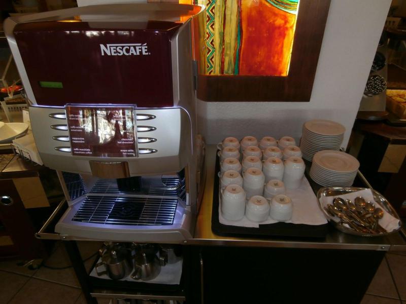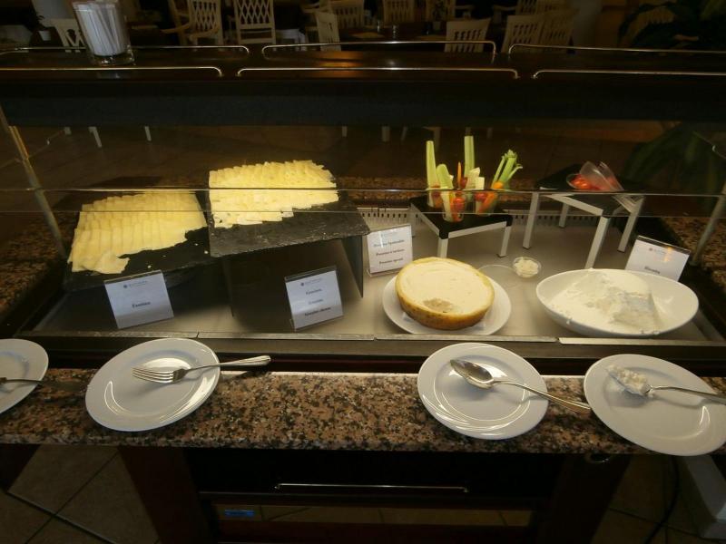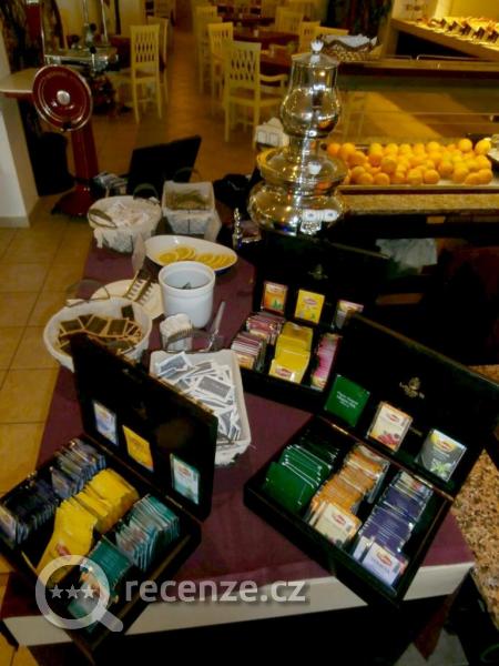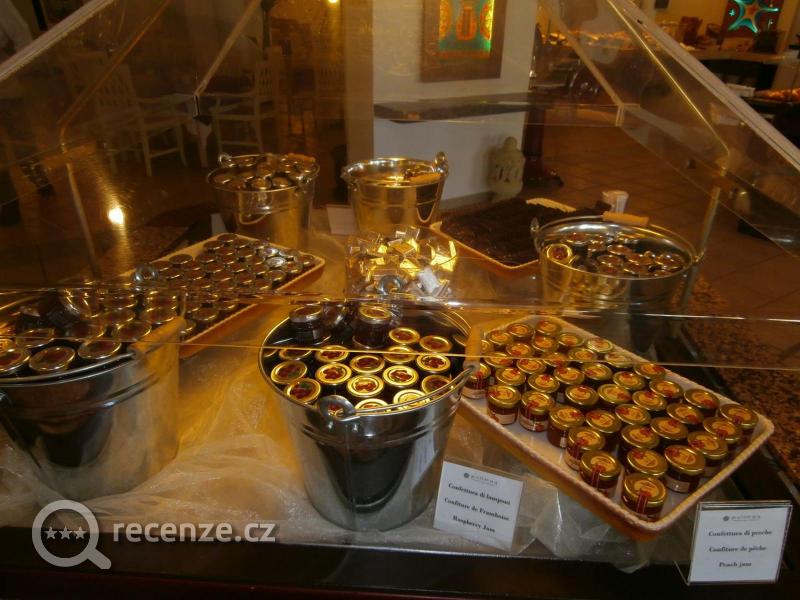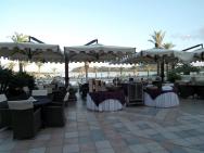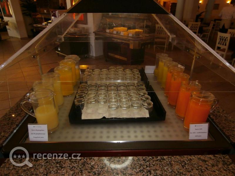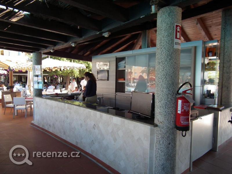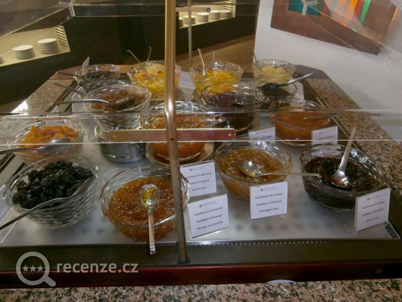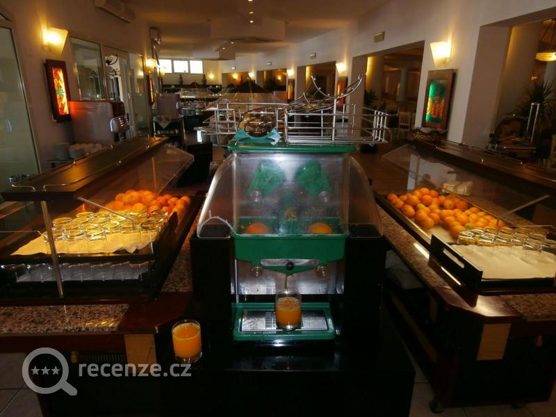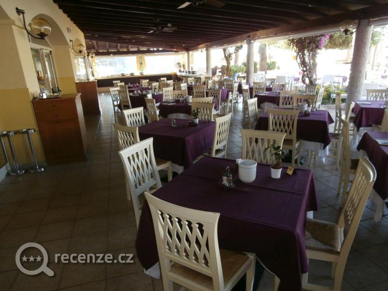 Polopenze: snídaně i večeře formou bohatého bufetu v restauraci "La Veranda" u bazénů, část krytá a část venku. Jídlo bylo rozmanité, měli jsme tam večeři a snídani, a obojí bylo velmi chutné, všeho dostatek, výběr velký. U snídaně i čerstvě lisovaný pomerančový fresh, spousta čerstvého ovoce, salátů. Různé druhy pečiva, med, marmelády, jogurty, musli, salámy, sýry, vajíčka a jiné dobroty. Večeřě byla luxusní - co do druhů, množství i chuti. Zde si vyberou jak velcí jedlíci, tak nároční gurmáni, tak i lidé, co potřebují třeba bezlepkovou stravu, vegani či vitariáni.