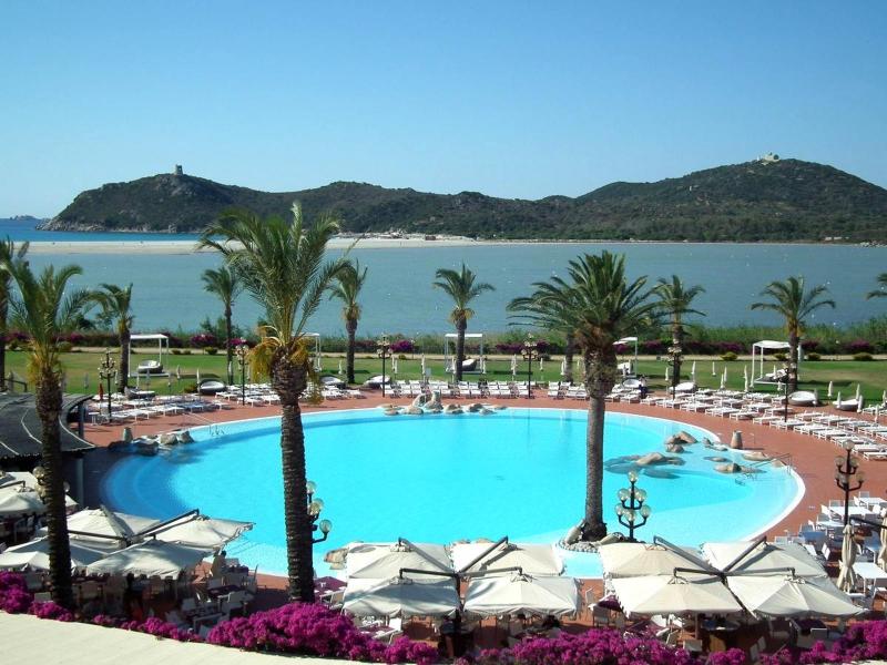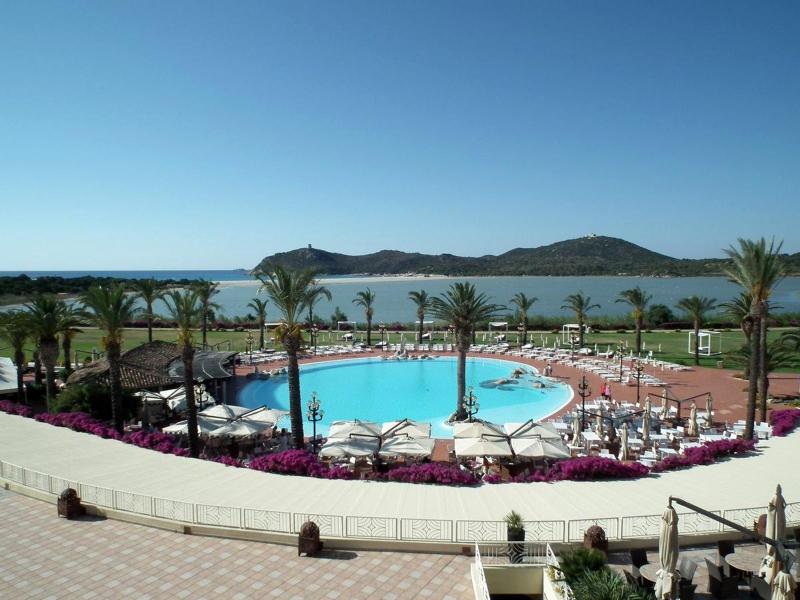Pullman Timi Ama Sardegna ***** je velký komplex s moderním až luxusním vybavením a výhledy na jezero, pláž a aragónskou věž..Leží v chráněné oblasti Capo Carbonara. Zahrada je udržovaná a areál je rozsáhlý. Od bazénů to je cca 7 minut pěšky podél přírodního jezera plného růžových plameňáků na krásnou prostornou písčitou pláž s čistým mořem. Je to jeden z nejlepších hotelů na jihu Sardinie a je vyhlášený svou kuchyní, vysokou úrovní služeb a krásnou bílou pláží. Uspokojí i náročnější klienty.