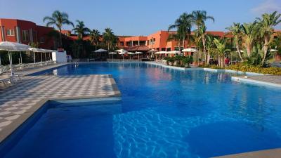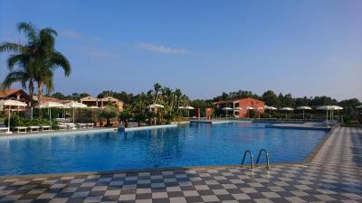 Odpovídající 4*. Animační tým se zde věnoval zejména italské klientele, která tvořila tak 80% hostů. Kromě restaurace, baru, bazénů, dětských prolézaček a kurtů zde mají také amfiteátr, kde se konal večerní program. My byli ubytování na druhém konci zahrady, v řadě nejblíže k pláži, a zde byl přes den i večer naprostý klid, hudba od bazénů či z divadla sem už téměř nedoléhala.