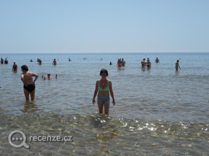 Pláž písčitá,vstup do moře pozvolný,zvládli to i vozíčkáři.Voda luxusní,plavou kolem vás malé rybičky,prostě nádhera.
