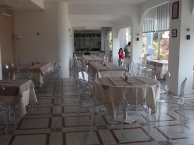 Je to mestský hotel, priamo pri ceste. Keď vojdete do hotela, ani neviete, že tam ste, pretože tam nie je žiadna recepcia. Recepcia je až na druhom poschodí - môžete ísť po schodoch alebo výťahom. Na prvom poschodí je reštaurácia a na treťom je ubytovanie. Hotel je celý rekonštruovaný. V blízkosti je lanovka, ktorou sa dostanete do historického centra Taorminy.