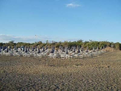 velká vzdálenost (cca 1 km), špinavé, zkalené a studené moře, malinká pláž bez veškerého vybavení (nebyly kabinky, sprchy, voda na opláchnutí), z kraje oblázky (do 0,5m), pak zlom na písek (na 1m), vysoké vlny (až 1,5m), takže se nedalo koupat a v moři bylo po celý týden max. 5 (slovy pět!) lidí. K zapůjčení maximálně šlapadla