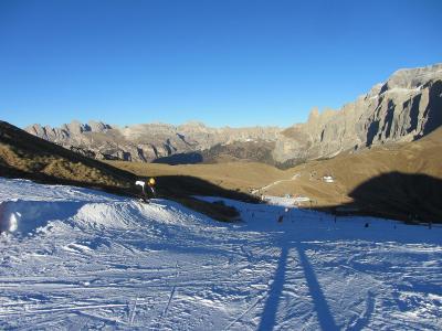 Dolomity zcela bez sněhu (krásné !), pouze jasno, teploty přes den cca 5-8 st.C.