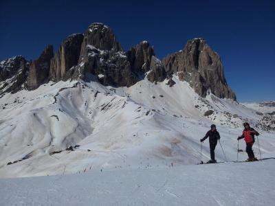 Sjezdovky vzdáleny 6km (Seis Seiser Alm) nebo 25 km (Val Gardena - Santa Cristina). Do Seis Seiser Alm jezdil denně hotelový skibus. V obou případech se jedná o rozsáhlá střediska, kde se v nadmořské výšce 2300 dá lyžovat na krásných a širokých sjezdovkách. Přiložených 9 forotgrafií je opravdu reálných. Níže posazené sjezdovky jsou naopak už v poledne boulovaté, ale to je dané hlavně tím, že se jedná o hlavní tahy, kde se soustředí většina lyžařů, kteří přejíždějí do odlehlejších částí střediska. V obou oblastech se lyžaři ale rozprostřou a co se týče lanovek, tak na ty jsme nikde nečekali. Vždy jsme rovnou jeli nahoru bez čekání.