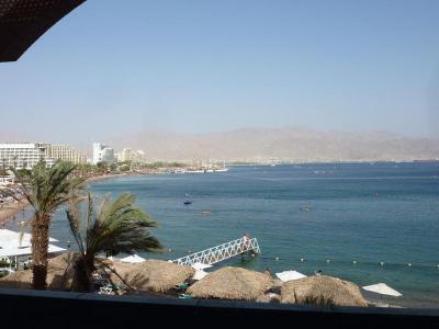 Vzdálenost k moři činila cca 500 m , dosažitelné bez problémů a po rovině. Pobřeží v Eilatu nabízelo velký výběr pláží, které nebyly přeplněné, i když o izraelském víkendu (pátek + sobota) plnější. Pláže písčité, čisté, bylo však třeba počítat s poplatkem za lehátko a slunečník obvykle 20 ILS (cca 100 Kč) na osobu a den. Pobyt bez těchto věcí byl zdarma. Jedna pláž byla zdarma, její kvalita však byla horší - kamenité úlomky. Moře naprosto bez chyby, klidné, čisté, průhledné. Nabídka vodních sportů velká - např. výlety na člunech, vodní skútry, kiteboarding. Směrem k egyptské hranici skvělé oceanárium s řadou atrakcí - lze doporučit návštěvu.