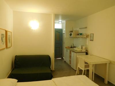 Prostorný a čistý pokoj s kuchyňským koutem, vlastní koupelnou a záchodem.