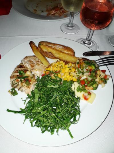 Ten největší výběr, všechno výborné, vše dochucené, snídaně: palačinky, lívance, vajíčka na všechny různé způsoby, oběd a večeře: všechny druhy mas, příloh a salátů, my jsme nejvíce byli nadšeni z tuňáků a mořských plodů, jinak měli i italskou a americkou kuchyň, opravdu si tam musí vybrat každý.