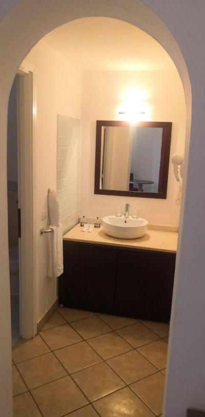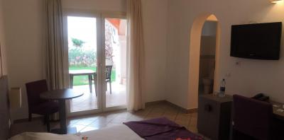 Pokoje Family - vybavení standardní, TV, klimatizace, fén, skříně , WC s bidetem, samostatně sprcha. Pokoje mají východ do zahrádky nebo na balkon, pokud je v patře. V základu je výhled do zahrady, s příplatkem boční, nebo přímý výhled na moře. Pokoj byl čistý a dobře uklízen. Bez připojení na WIFI. Hodnotil bych však spíše na 4* .
