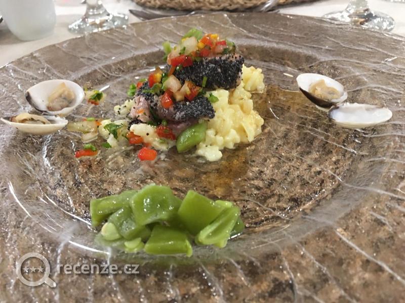 Velký výběr formou švédských stolů. Denně několik druhů masa včetně ryb. Za pobyt 3x možnost využití tematických večeří (grilované ryby, italská kuchyně, degustační menu).