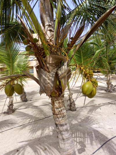 Krásná zahrada s kokosy, všude plno písku, máte ho fakt všude Tobogány super.