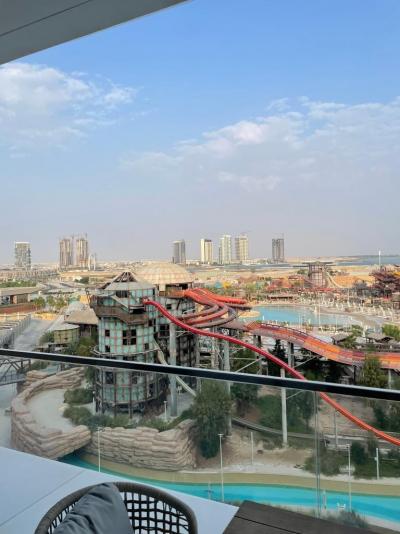 Na pláži je teda Waterpark + tobogánová věž. Vypadá vše možná jako zrezlé, ale to je styl. Má připomínat doby, kdy objevili poprvé ropu, proto se i jednotlivé tobogány jmenují v tomto stylu a ta věž se jmenuje Rig 1938, podle roku, kdy ropu objevili. Tato tobogánová věž také drží dva Guinnessovy světové rekordy.