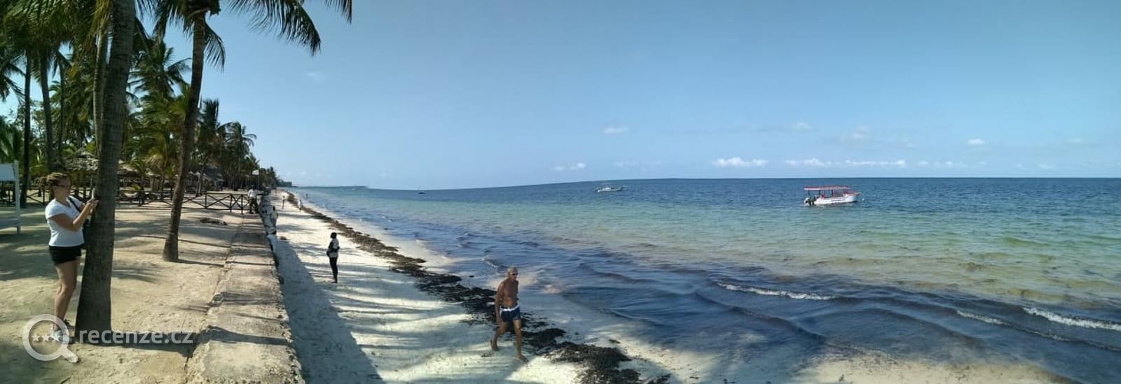 Bláž s bílým pískem. Na pláži byl dostatek kokosových palem, díky nimž byl příjemný stín. Vstup do moře byl pozvolný, ale moře bylo bohužel plné chaluh.