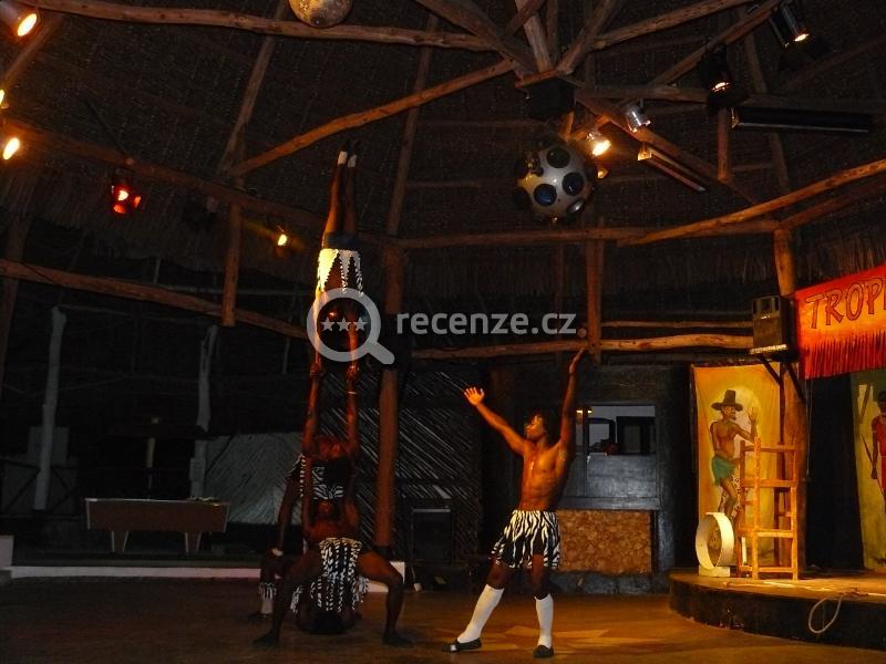 all inclusive 10-24:00, bar u recepce a bar na pláži. Večer u amfiteátru, pokud je večerní show.