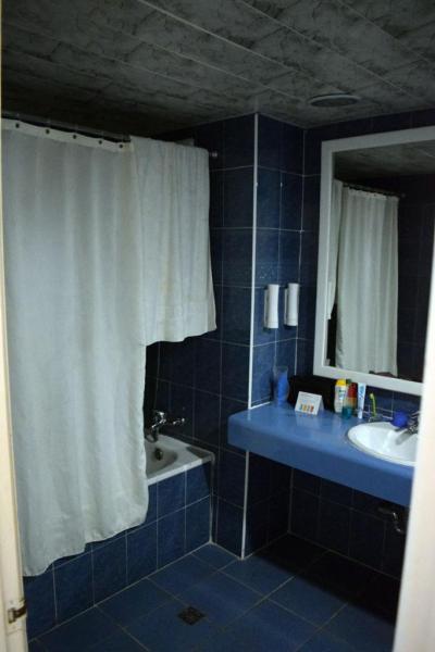Prostorná koupelna, WC i bidet, umyvadlo s širokou odkládací plochou a obřím, ale značně zašlým zrcadlem, vana se závěsem, který byl vždy upraven tak, že voda stékala mimo tu vanu (?). Dávkovače s kosm.potřebami, ale bez popisu - stejné byly u výtahů s desinfekcí. Teplá voda pouze 50°C a ještě dost slabý tlak, regulace vyhovující teploty ve vaně dost složitá. 12.den pobytu mi opravili kryt toalety, předtím byl jen opřený za....